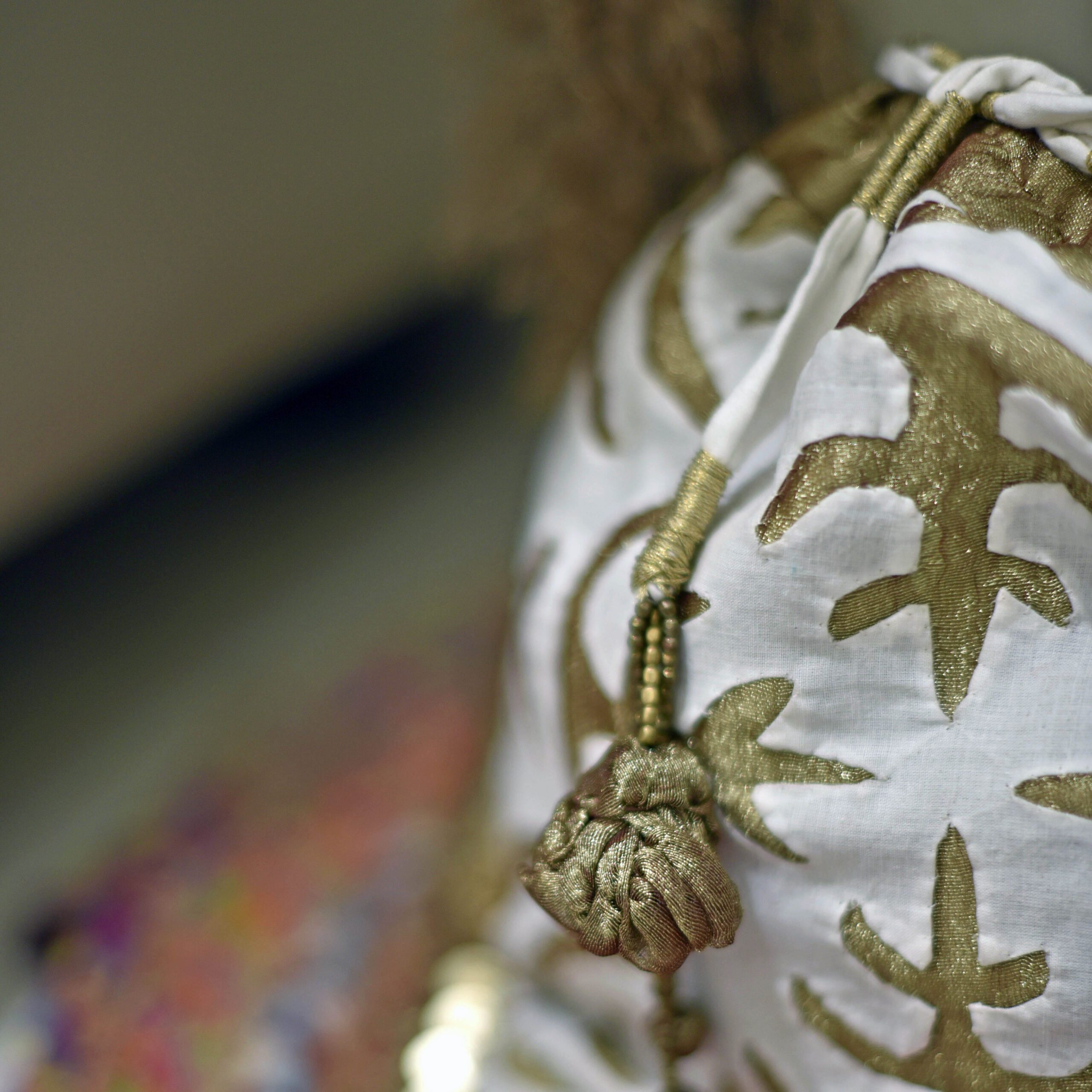 White and golden tissue applique batwa